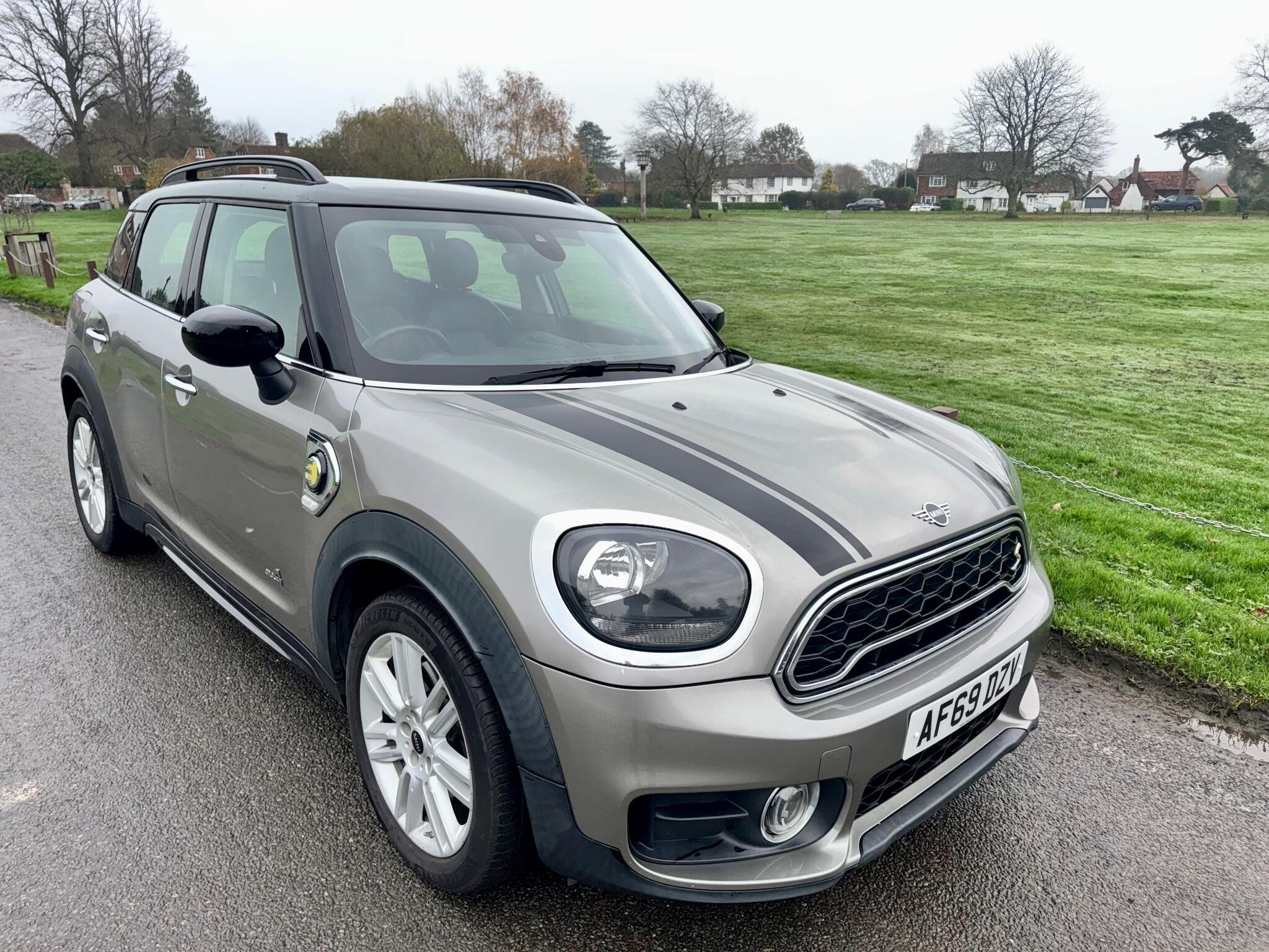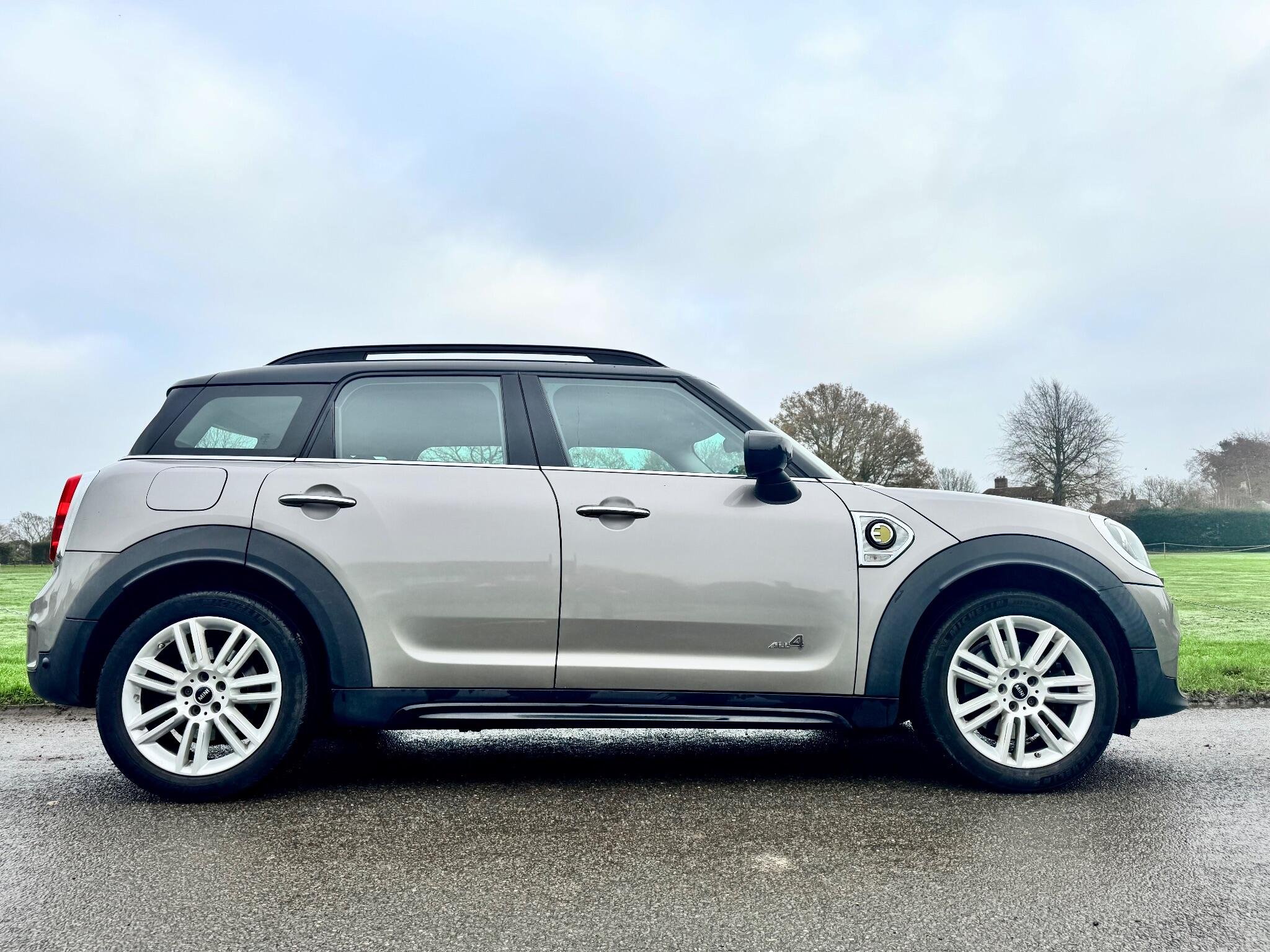 This 2019 MINI Countryman Cooper SE Exclusive boasts exceptionally low mileage for its age, having covered just 42,000 miles. This four wheel drive plug in hybrid model features a 1.5 litre petrol engine and meets Euro 6 emission standards. It comes equipped with stylish black bonnet stripes and practical black roof rails. Inside, you'll find a comprehensive navigation pack that includes Apple CarPlay, along with Bluetooth connectivity for compatible mobile phones, offering seamless audio streaming. The convenience of a rain sensor and automatic headlight activation further enhances the driving experience.
